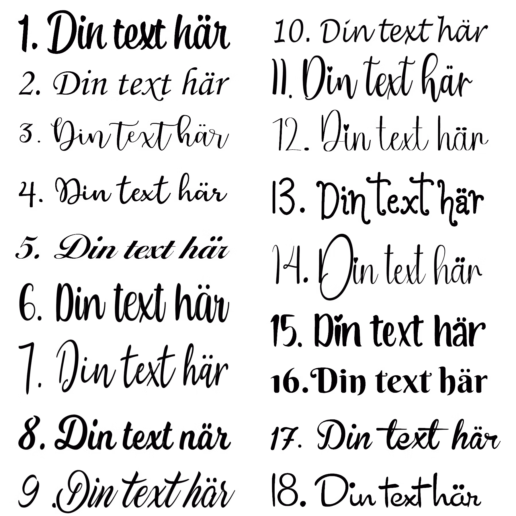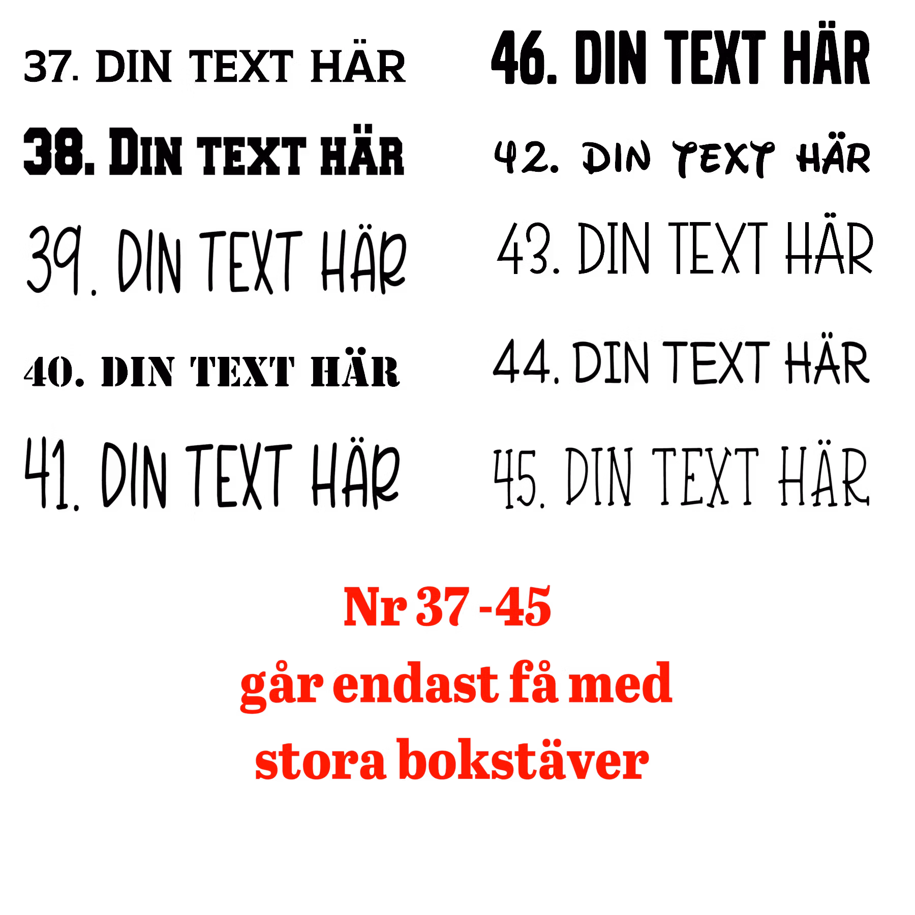 Har du övriga önskemål om textens utformning eller annat så går det bra att skriva det som meddelande i kassan eller maila oss på [email protected] så försöker vi tillgodose era önskemål så gott vi kan.