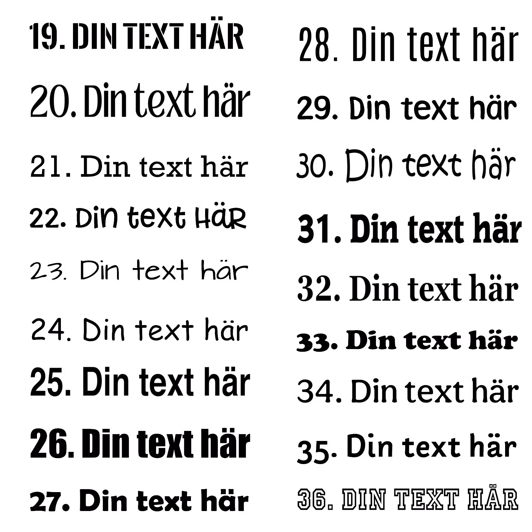 - Ett valfritt ord/namn eller en mening i textilvinyl