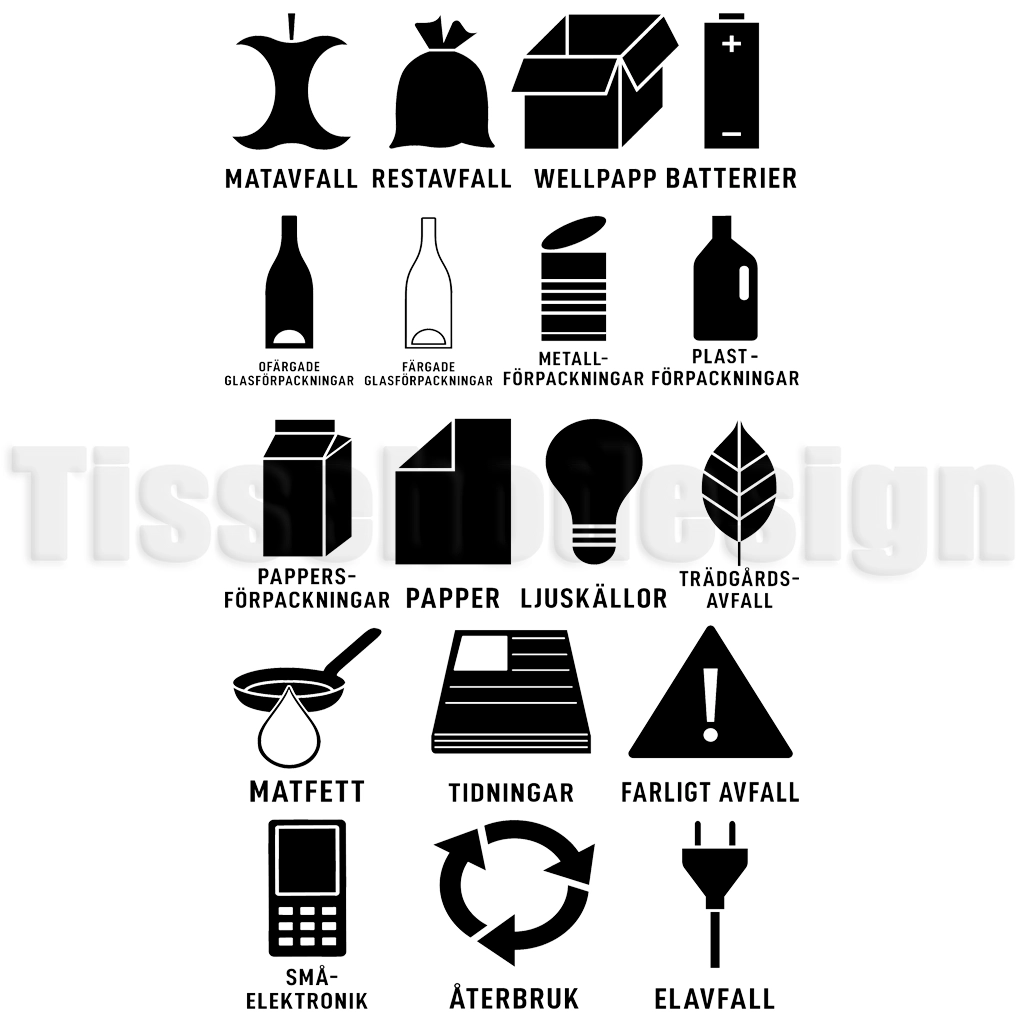 - Tydliga symboler för olika typer av källsortering