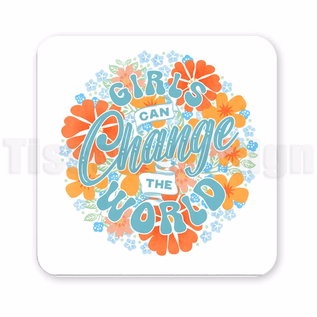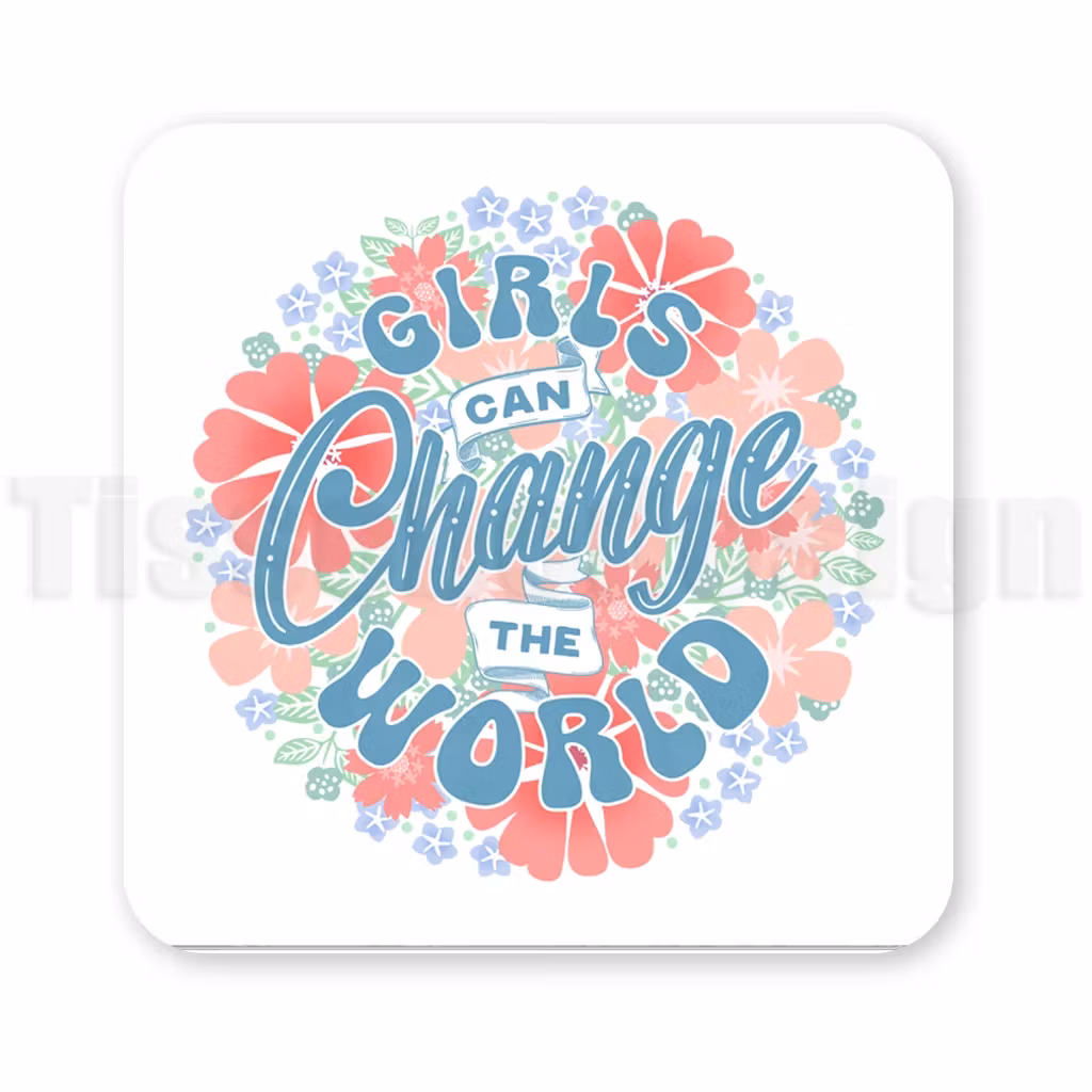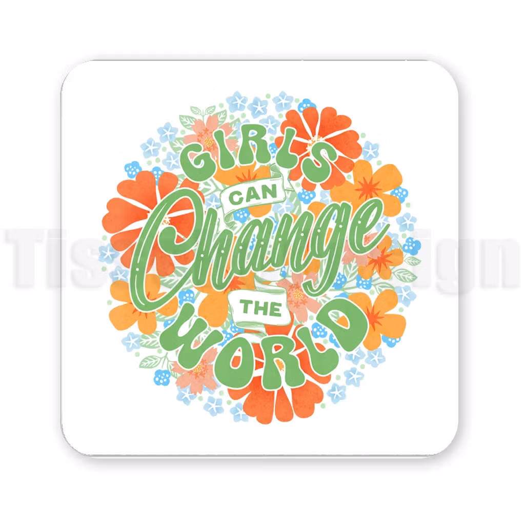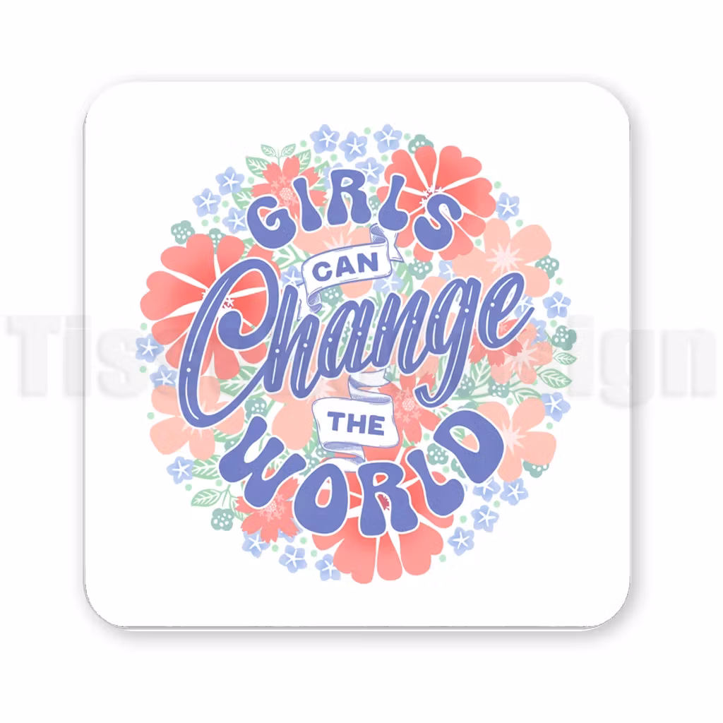 Den här magneten bär ett kraftfullt budskap: Girls Can Change the World.