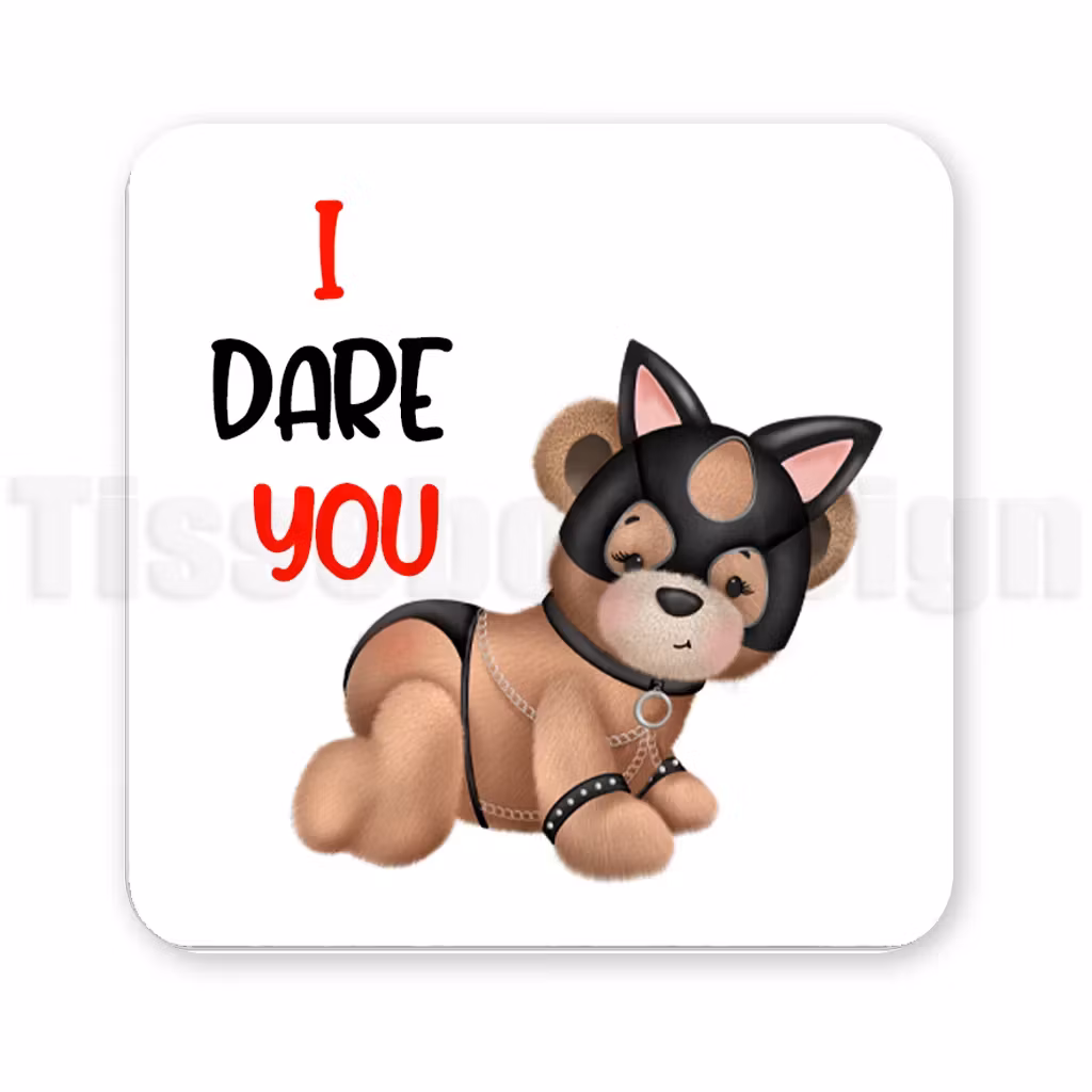 Denna humoristiska magnet bjuder på en oväntad kombination av söt och kaxig attityd. En tuff tjejnalle i mask och sele poserar självsäkert under texten I Dare You – en fräck men charmig detalj som passar lika bra på kylskåpet som i verkstaden eller kontoret. Perfekt för dig som gillar motiv med lite attityd och vill sticka ut.