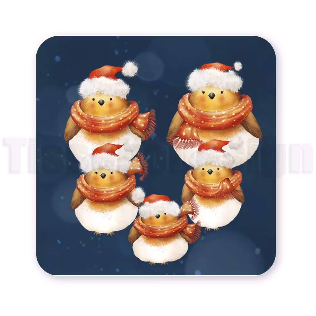 Den här magneten visar en gullig familj av små rödhakar med röda halsdukar och tomteluvor – ett motiv som fångar vinterns mysigaste stämning. Perfekt för att sätta på kylskåpet eller som liten gåva till någon som älskar fåglar och jul.
