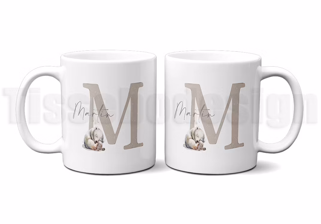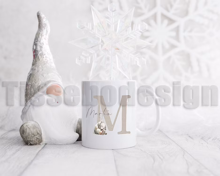 Med en stor bokstav, namn och ett bedårande isbjörnsmotiv är denna mugg både vacker och personlig. Perfekt för barn, eller som en speciell mugg för dig själv.