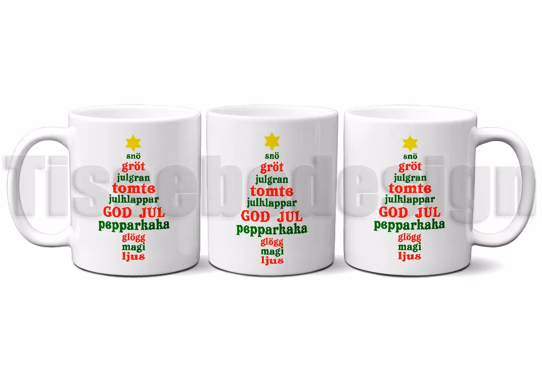 Denna mugg med ett stilfullt julgransmotiv och text som formar ord som God Jul, tomte, glögg och ljus, är perfekt för att skapa julstämning. Julmuggen kombinerar klassisk julestetik med en lekfull twist och är idealisk för alla som uppskattar traditioner. Tillverkad av högkvalitativ keramik och med en kapacitet på 330 ml, passar den för varma drycker som kaffe, te eller varm choklad under julens kalla dagar. Designen med julhälsning finns på båda sidor och passar för både höger- och vänsterhänta.