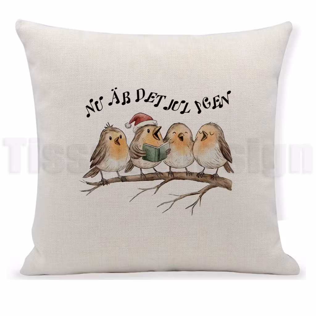 Det här kuddfodralet har ett mysigt motiv med småfåglar som sjunger “Nu är det jul igen” – en illustration som passar perfekt i soffan, på fåtöljen eller i vinterinspirerad heminredning. Det skapar en varm och inbjudande känsla i hemmet och blir ett fint tillskott till juldekorationerna.