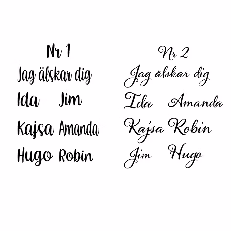 - Personligt namntryck – Namnet anpassas efter äggets storlek, vilket gör att måtten varierar beroende på namnets längd.