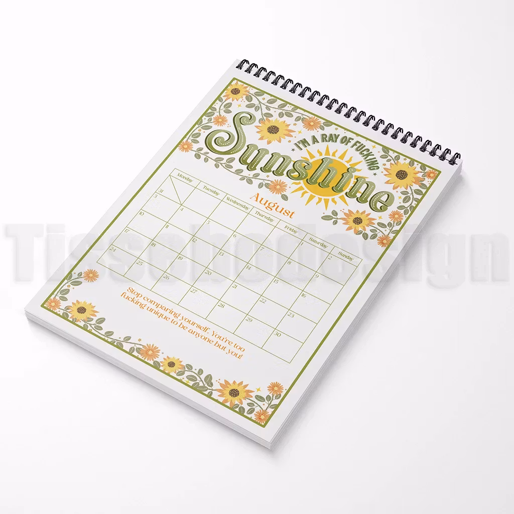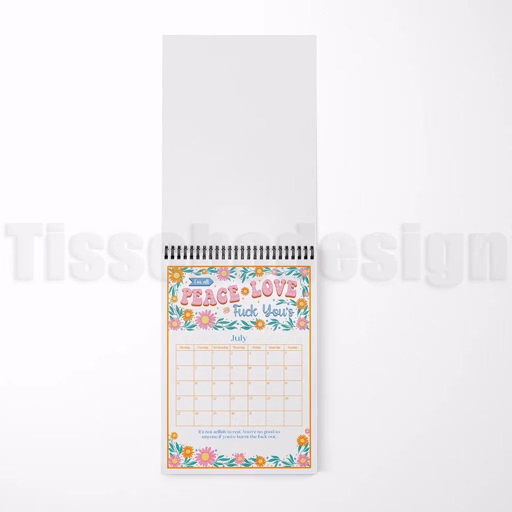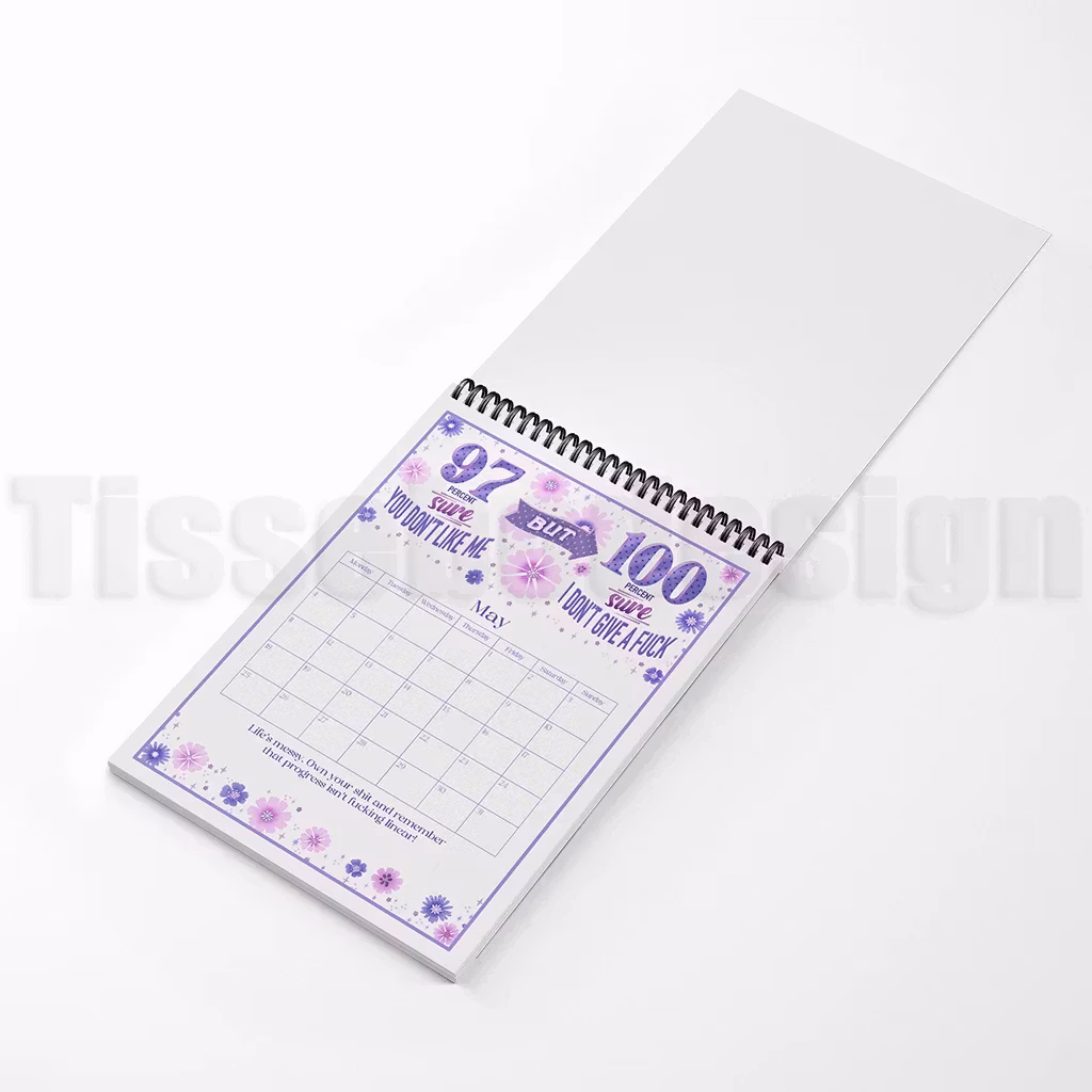 Den här kalendern bjuder på tolv unika illustrationer där blommor möter humor och ärliga uttryck. De starka formuleringarna och de mjuka färgerna skapar en personlig present med tryck som gör planeringen både roligare och mer färgsprakande. Du kan dessutom lägga till eget namn på framsidan, vilket gör kalendern extra unik – perfekt som rolig helårsgåva till dig själv eller någon med en lika vass humor.