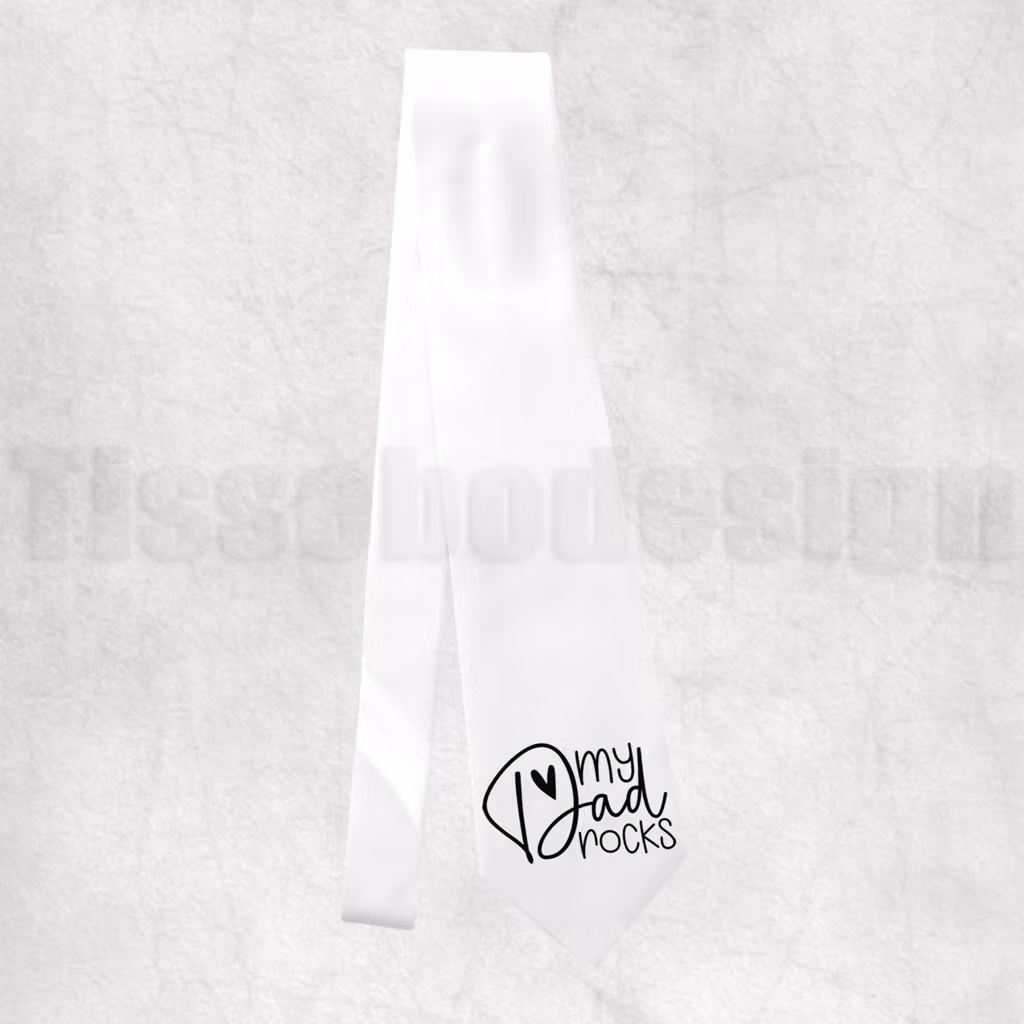 Den här vita slipsen med texten ”My Dad Rocks” är både charmig och personlig – perfekt som fars dag-present eller en rolig gåva till pappa som betyder allt. Den enkla designen med svart tryck gör den lätt att matcha och visar samtidigt hur mycket han uppskattas.