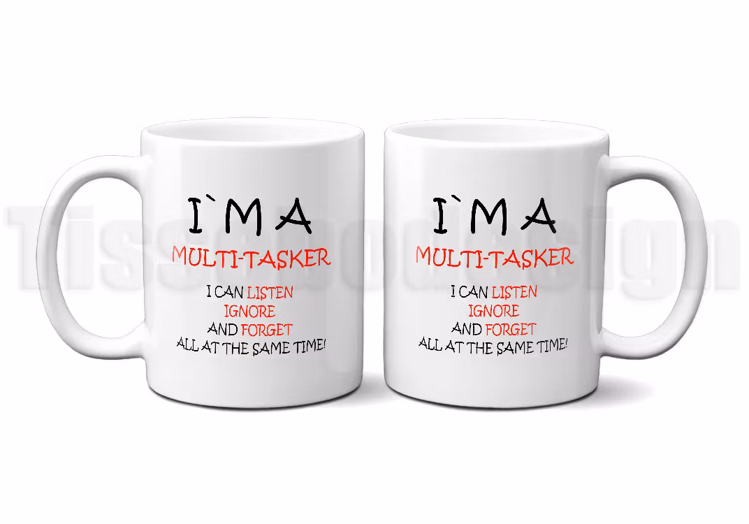 För alla som ständigt jonglerar med flera uppgifter samtidigt – denna mugg är för dig! Med det humoristiska trycket I’m a Multi-Tasker på båda sidor, visar denna mugg på din hektiska livsstil och multitaskingförmåga. Tillverkad av högkvalitativ keramik, finns muggen i två storlekar – 330 ml och 450 ml – vilket gör den både funktionell och hållbar för daglig användning. Perfekt för att njuta av din favoritdryck medan du håller igång hela dagen!