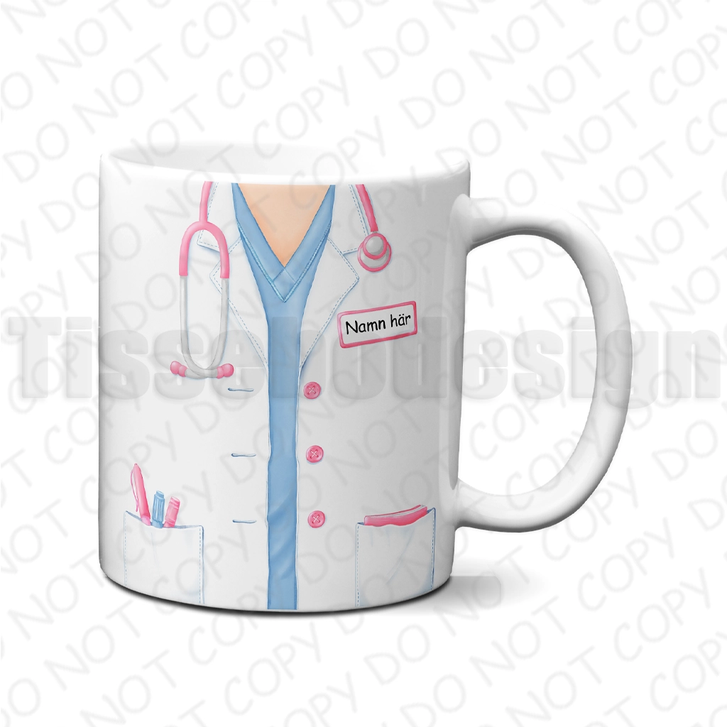 Den här muggen är perfekt för dig som vill skapa en personlig mugg med namn och valbar figur som verkligen känns rätt. Du väljer själv mellan flera olika alternativ och kombinerar med ett eget namn för att skapa en unik design. En mugg med tryck som passar perfekt för dig inom vårdyrket.