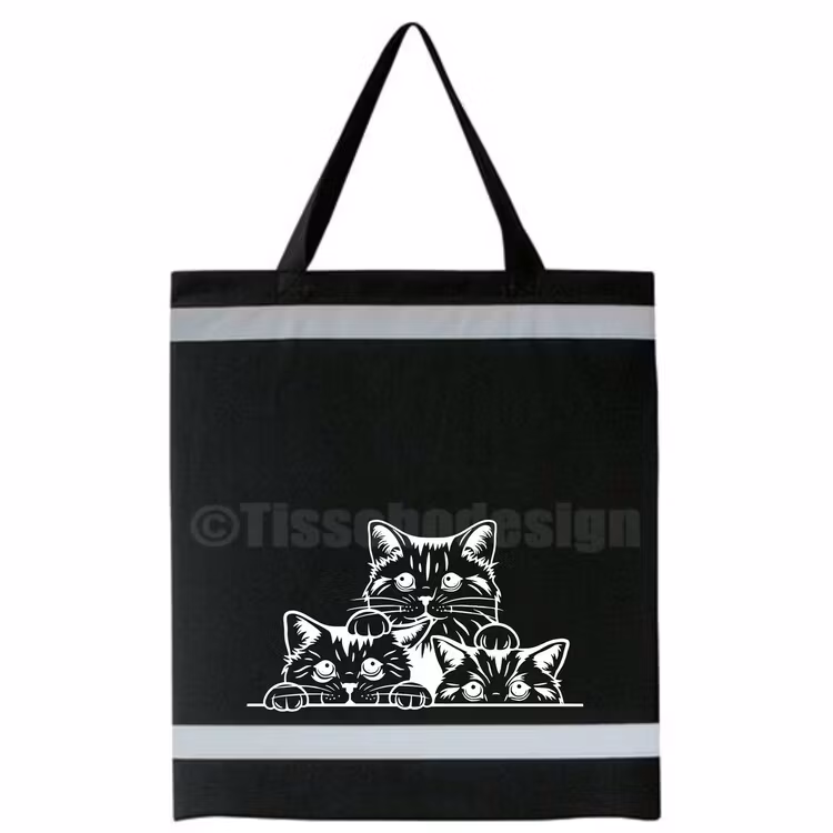 Denna praktiska och stilrena reflexkasse med kattmotiv är perfekt för dig som vill kombinera säkerhet med en personlig touch. Tillverkad i slitstark 100% polyester, är väskan designad för att tåla daglig användning och samtidigt hålla dig synlig i mörker. Kassen är utrustad med två 2,5 cm breda reflexband, som garanterar att du syns tydligt när du är ute och går, särskilt under de mörka månaderna.